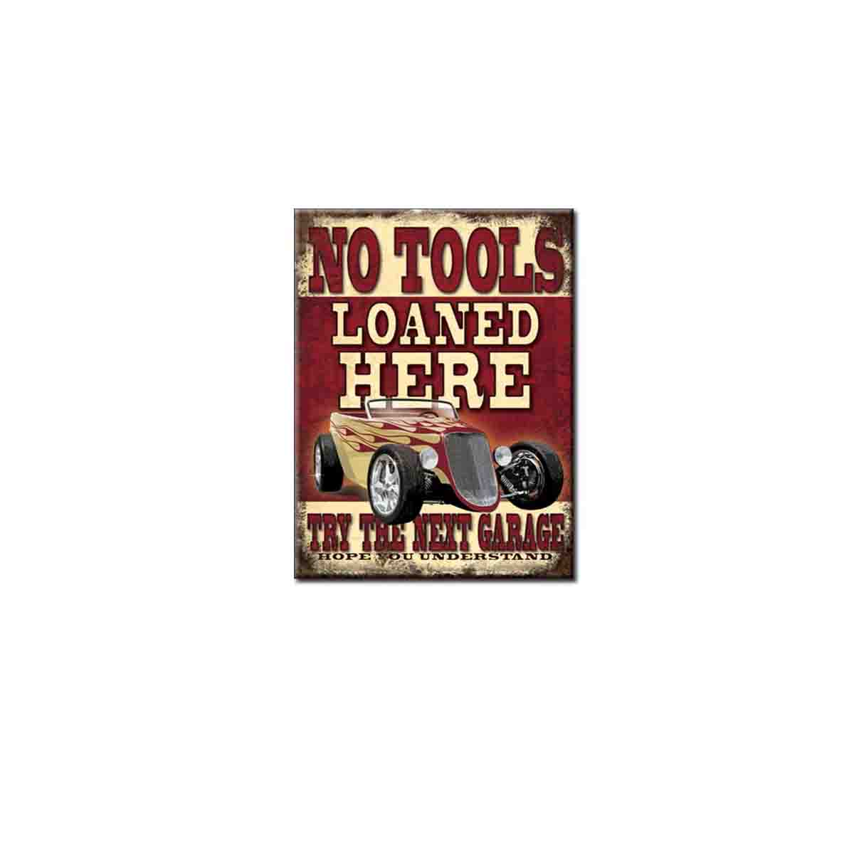 No Tools Loaned Here Fridge Magnet. Has a magnetic backing. Measures 78mm x 53mm.