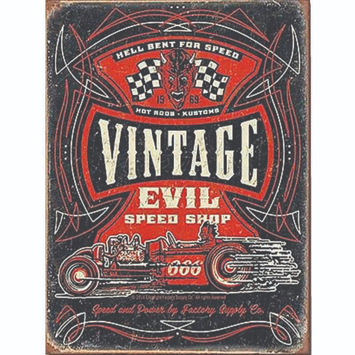 Vintage Evil Speed Shop Tin Sign.