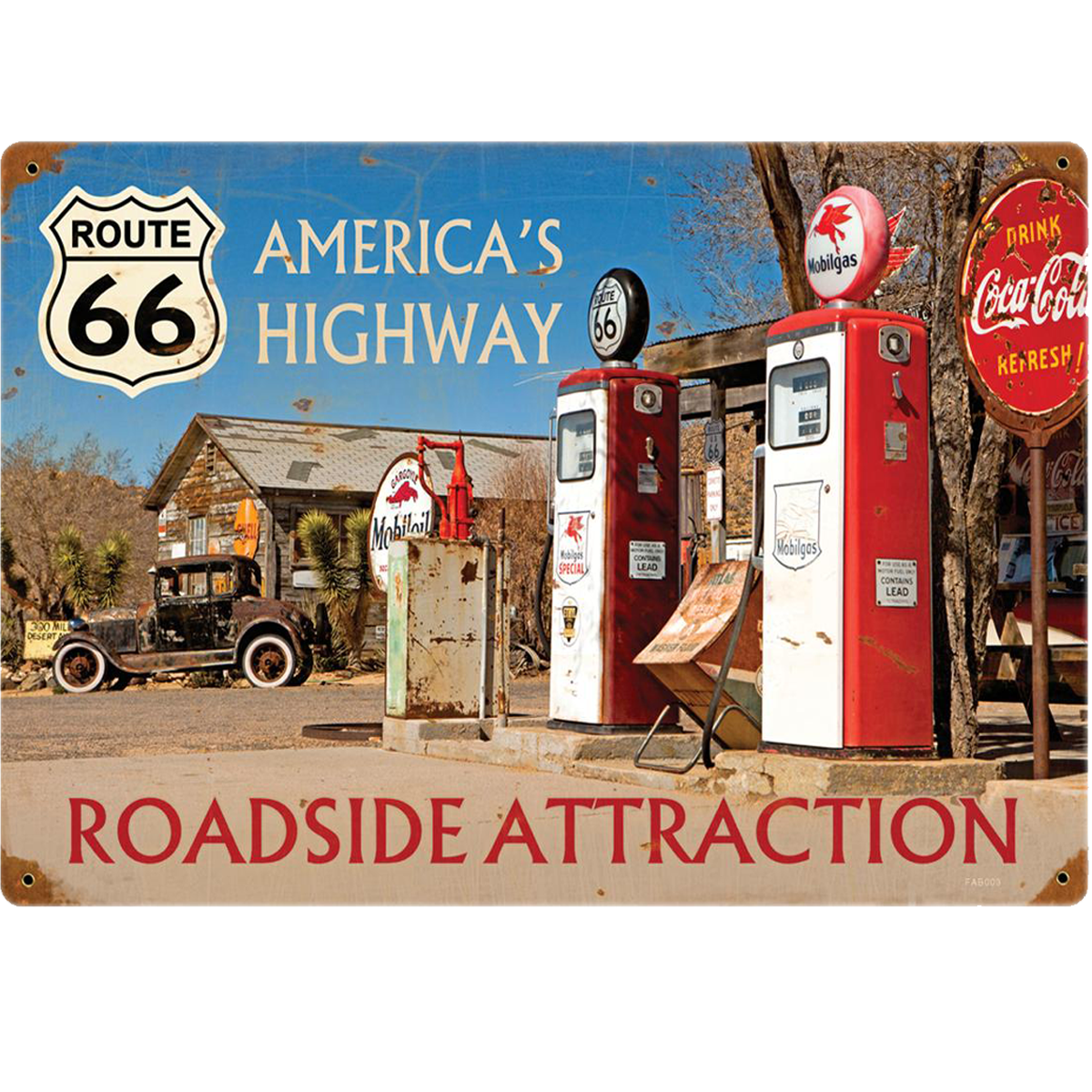 Route 66 Roadside Attraction Tin Sign.