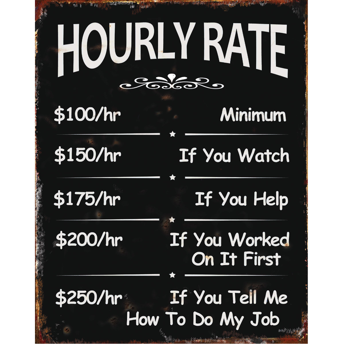 Hourly Rate Tin Sign.