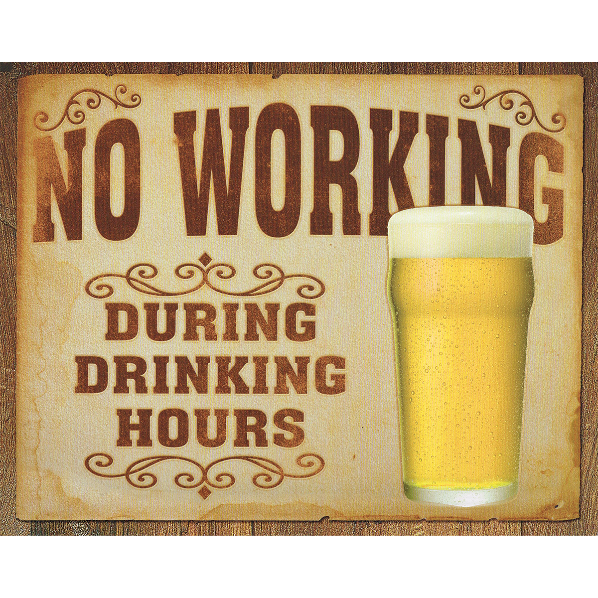 No Working During Drinking Hours Tin Sign.