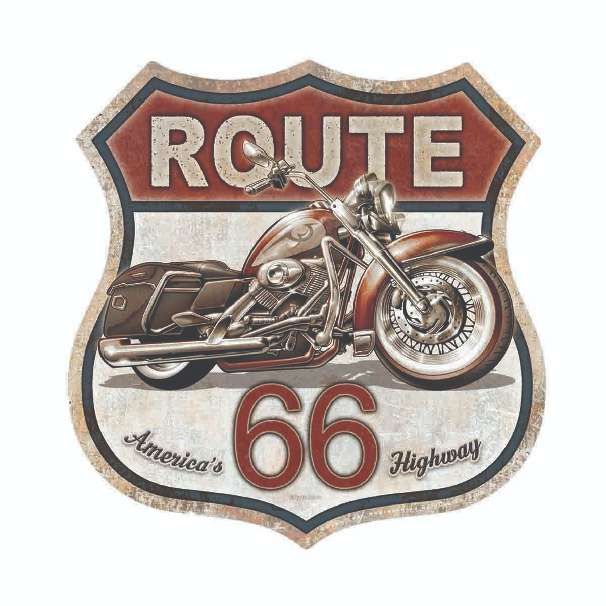 Route 66 Harley Shield Tin Sign. Embossed aluminium cutout. Measures 30cm x 30cm. Made in USA