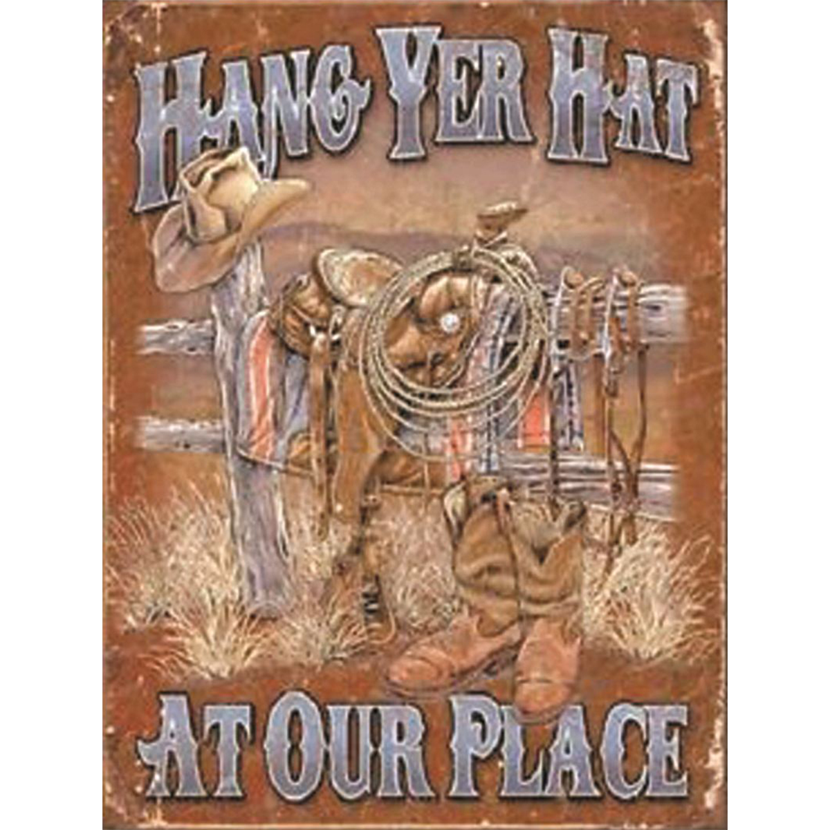 Hang Yer Hat At Our Place Tin Sign.